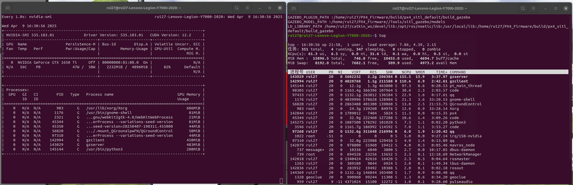 终端显示我们此时已经使用了GPU进行加速,这是我们查看GPU和CPU的占用率,在终端输入以下两条指令