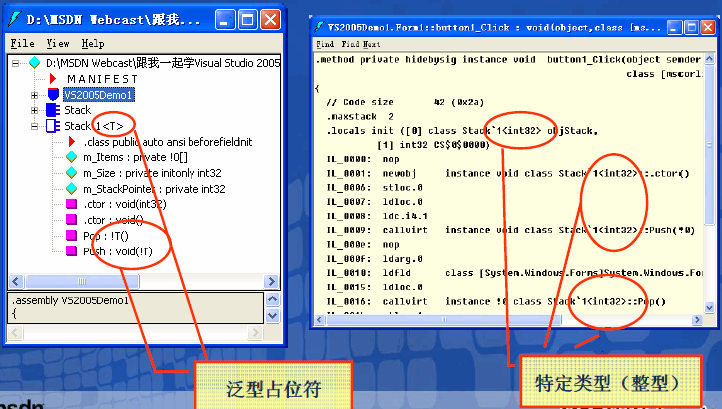• 在.NET 2.0 中,泛型在IL(中间语言)和CLR 本身中具有本机支持