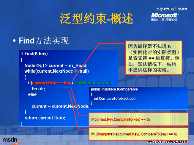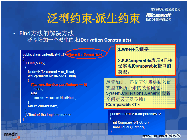 • 不会强行对值类型进行装箱和取消装箱,或者对引用类型进行向下强制类型转换,所以性能得到 显著提高