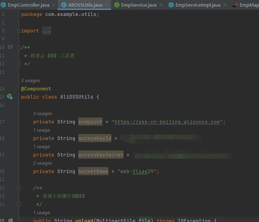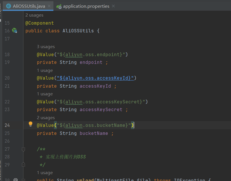 这里的这几个参数都是写在java文件中,不灵活,修改的时候需要自己找到该java文件才能修改,可以将这些参数写在配置文件application.properties中,然后再使用注解@Value进行外部属性的注入