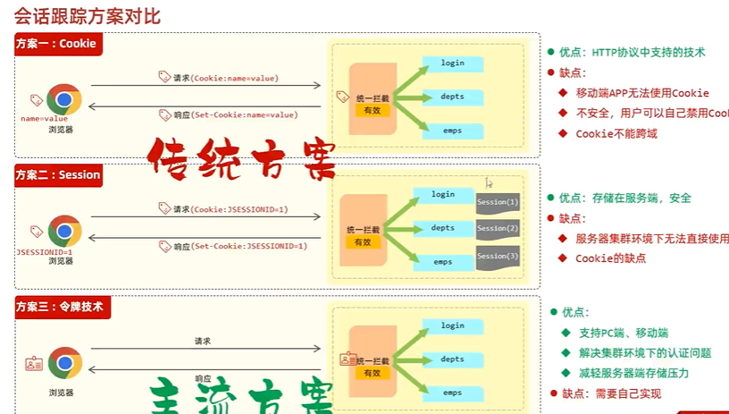 会话跟踪:一种维护浏览器状态的方法,服务器需要识别多次请求是否来自同一浏览器,以便在同一次会话的多次请求间共享数据。