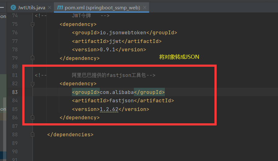 //手动将对象转为JSON返回 引入阿里巴巴提供的fastjson工具包