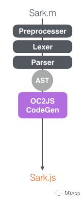 就像 Objective-C 是由 Clang 编译器和 Objective-C Runtime 共同实现一样,DynamicCocoa 也是由对应的两部分构成: