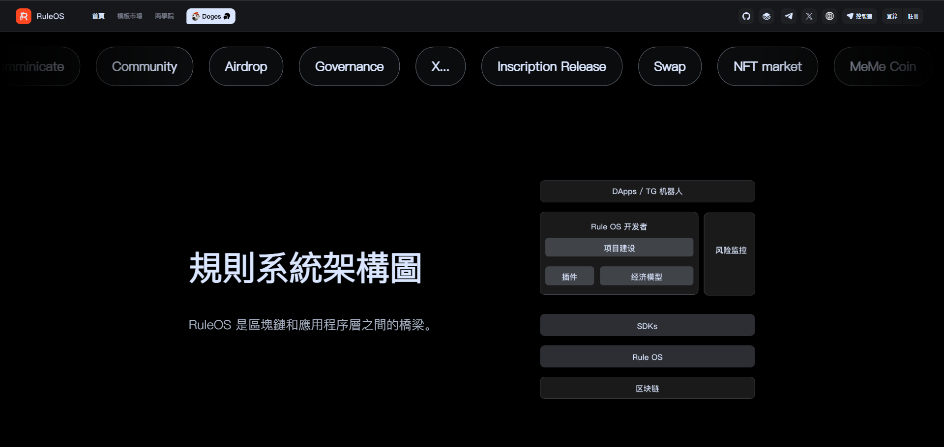 与传统 Windows 操作系统上应用的核心特点可视化不同,RuleOS 上应用的核心是组织。因为区块链从应用场景上是解决生产关系问题,每个生产关系对应一个组织,每个 token 背后本质就是一个组织。RuleOS 围绕组织来构建,将每个组织拆解成治理、经济和业务,使得发 token、dao 治理、defi 等当前 Web3 的应用功能变成了 RuleOS 上每个应用都有的基本功能组件。以一个去中心化自治组织(DAO)为例,借助 RuleOS 的组织构建功能,能够快速搭建起组织的治理架构,设计合理的经济激励机制,开展具体的业务活动,这为 Web3 应用的创新和发展提供了更为广阔的空间。