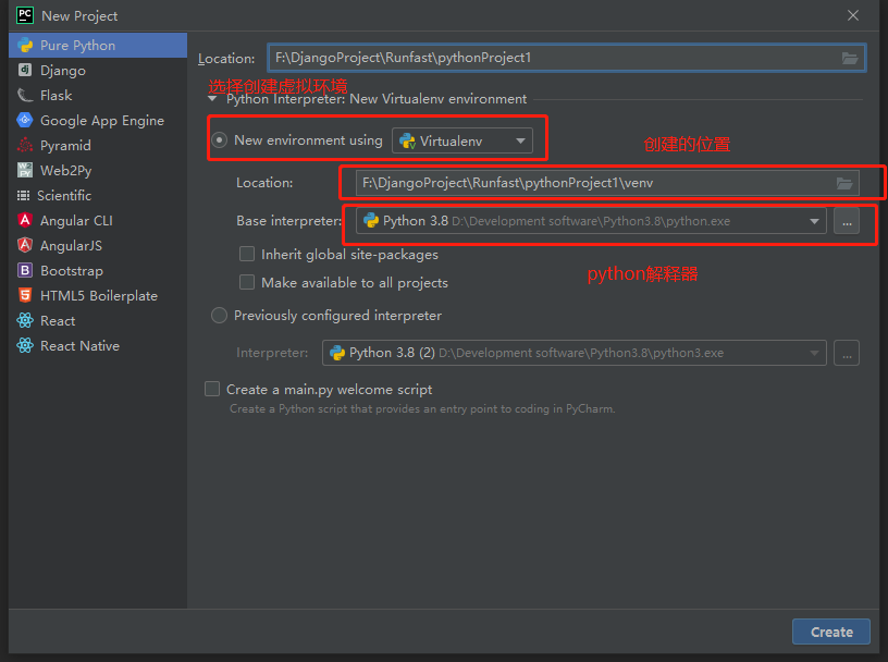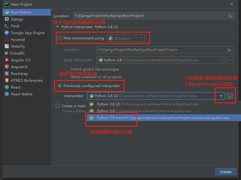 选择要用的解释器即可 全文不要再次勾选new enviroment...
