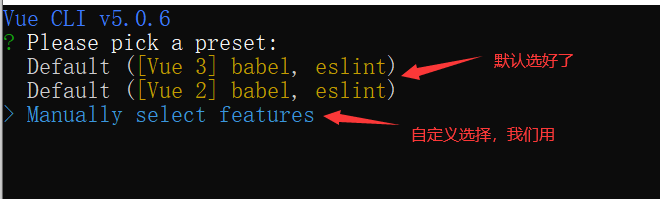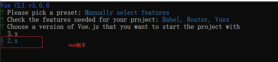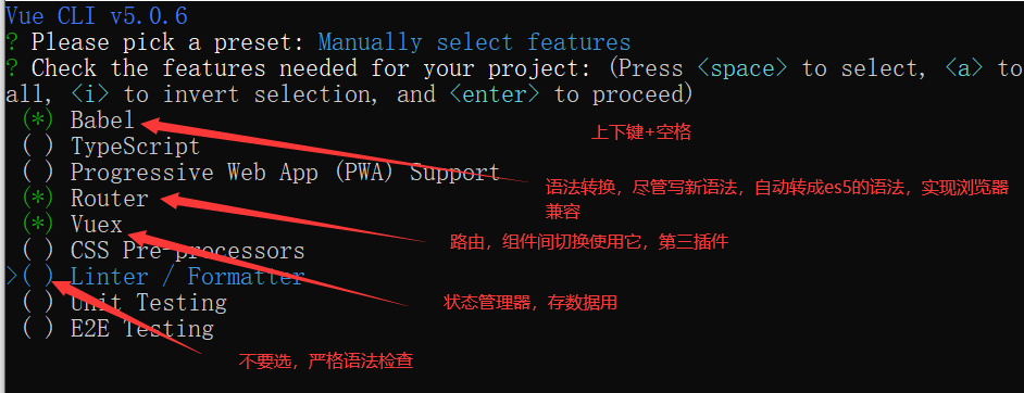 vue create 项目名,步骤如下图