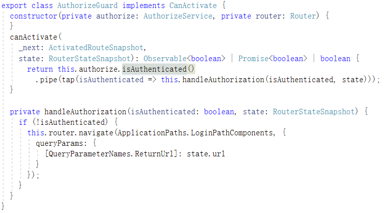 Because the 'fetch-data' route is protected by AuthorizeGuard so inside the AuthorizeGuid.canActivate method which use the AuthorizeService.isAuthenticated() to check if the use is login in.