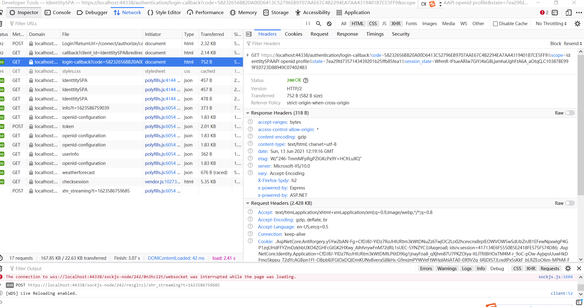 Lets's assume the user input the correct email and password then click Login Button will redirect the user to the /connect/authorize/callback end point.