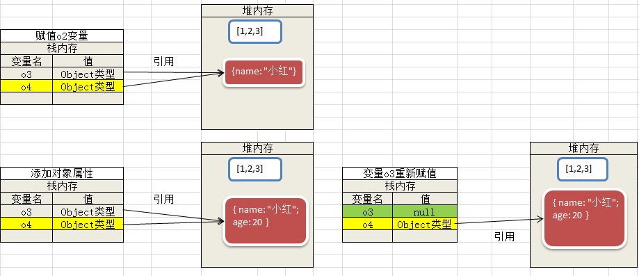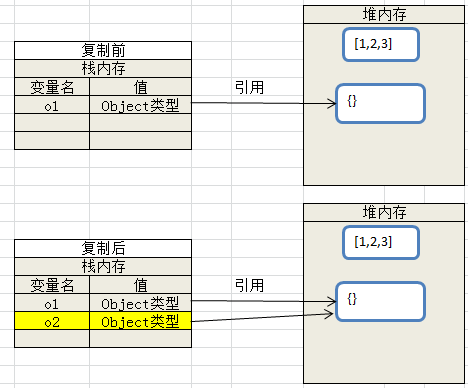 咦?奇怪了,怎么改变o1变量,o2也会变啊?,画个图解释下吧