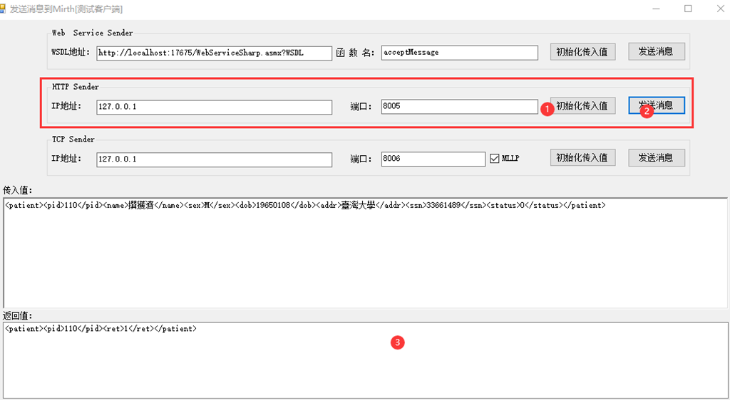 运行C#版HTTP Sender,进行如上测试,成功获取响应,验证Mirth Connect 的HTTP Listener信道OK!