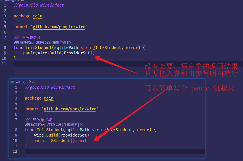 wire.go,本质就是一个模板,其实不需要完全符合go语言语法,简单处理如下