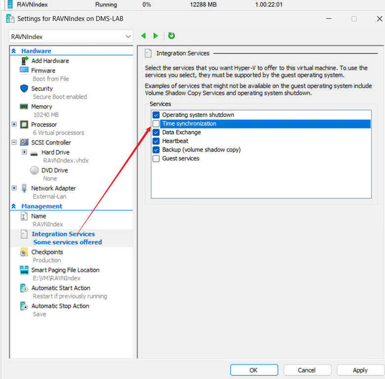 Step 1: 在虚拟机中禁用 Hyper-V 时间同步