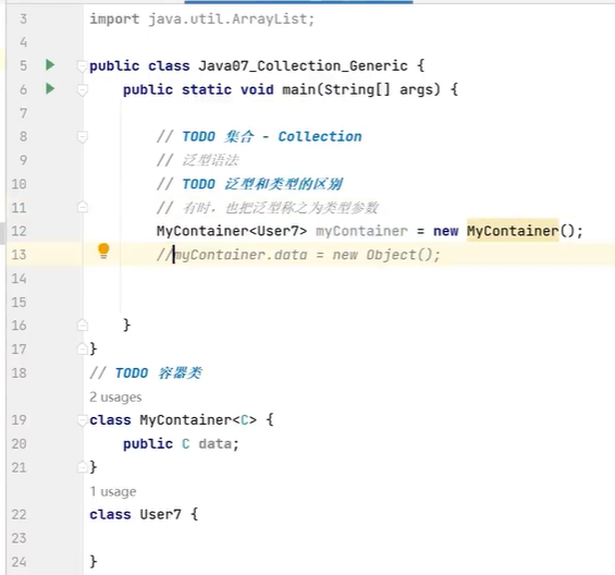 - Collection实现子类可以存放多个元素,每个元素都可以是Object
