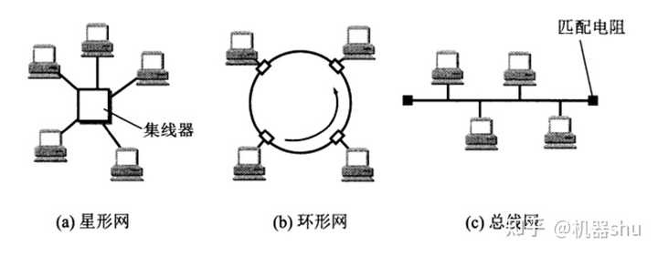 局域网就是广播信道的一种,常见的拓扑结构如下图。随着局域网的发展,出现了不同称呼的局域网,比如以太网就是局域网的一种。但是以太网发展太快,以至于后来它成了“局域网”的同义词。