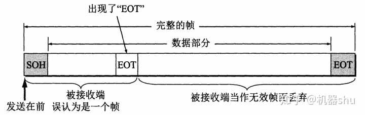 但也会出现传的数据不是ASCII字符时,那么数据里会有SOH和EOT,这就要用透明传输的办法了。简单说就是数据里的SOH和EOT前加上转义字符ESC,要是传到网络层,那就传之前删除这个转义字符就好。