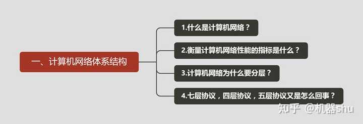 后来看别人怎么学习,自己找到了问题,就是孤立地记忆了,脑中没有知识大纲,各种知识混在一块。为了打造基础知识结构,我直接买了一本王道的计算机考研辅导,里面就把知识结构拎出来了,一目了然。快速刷完这个基础知识结构,再把谢希仁的书看一看,基本也就没问题了。