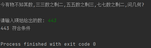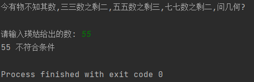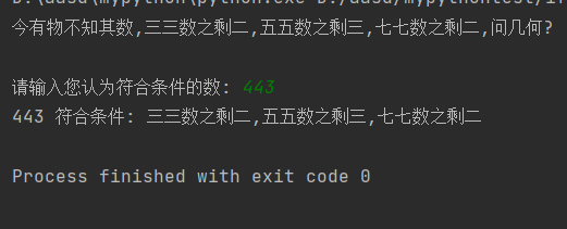 print(number , "符合条件: 三三数之剩二,五五数之剩三,七七数之剩二")