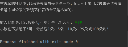 print("但是不同朵数的玫瑰花代表的含义是不同的。 \n")