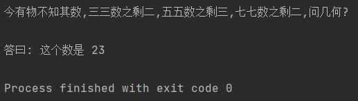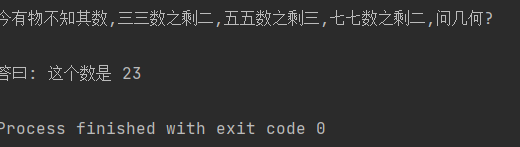 print("今有物不知其数,三三数之剩二,五五数之剩三,七七数之剩二,问几何? \n")