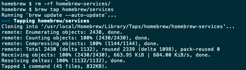 cd /usr/local/Homebrew/Library/Taps/homebrew/ rm -rf homebrew-services brew tap homebrew/services