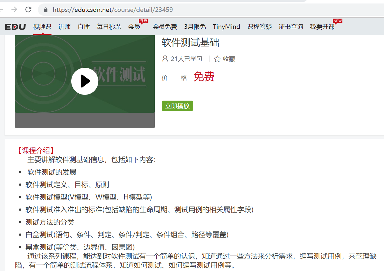 软件测试基础CSDN课程:https://edu.csdn.net/course/detail/23459