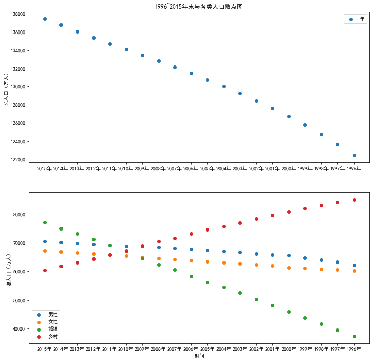 一、分析1996~2015年人口数据特征间的关系(1题50分,共50分)