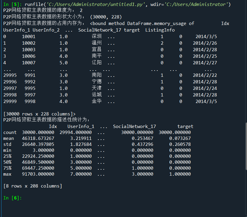 二、读取并查看P2P网络贷款数据主表的基本信息(1题10分,共10分)