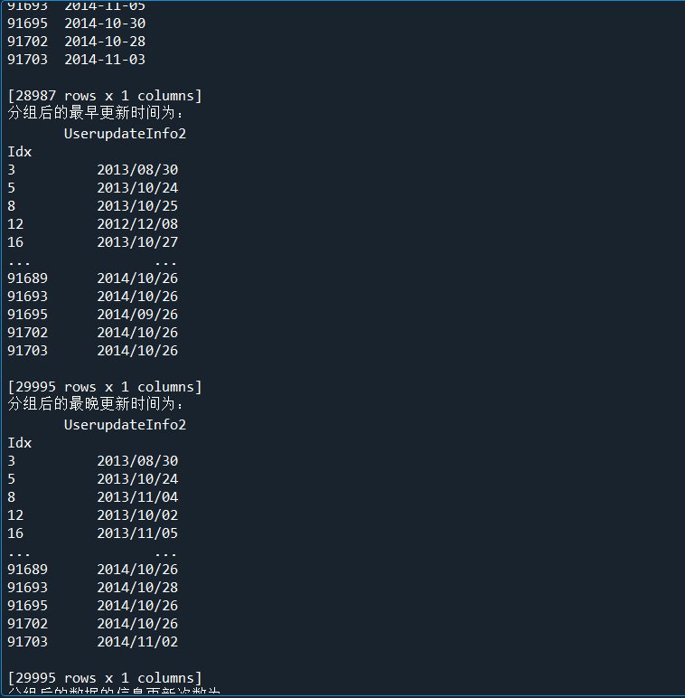 print('分组后的最晚更新时间为:\n',UserGroup.agg(np.max))