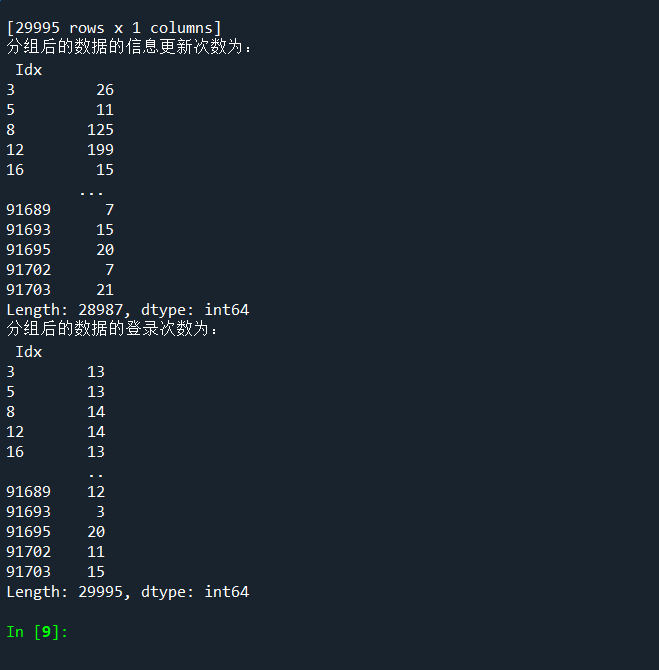 (3)使用size方法求取分组后的数据的信息更新次数与登录次数。