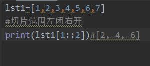 语法格式:列表名【start:stop:step】,开始、结束、步长