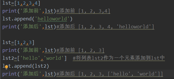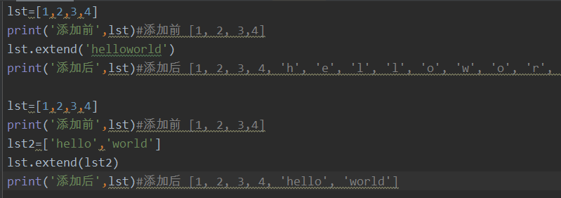 使用extend()在列表的末尾至少添加一个元素,每一个都会成为单独的元素添加到列表中