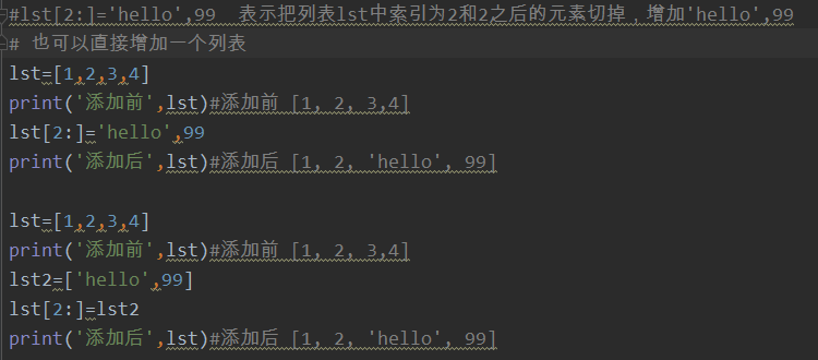 使用切片,生成新的值,可以增删改查,修改多个元素