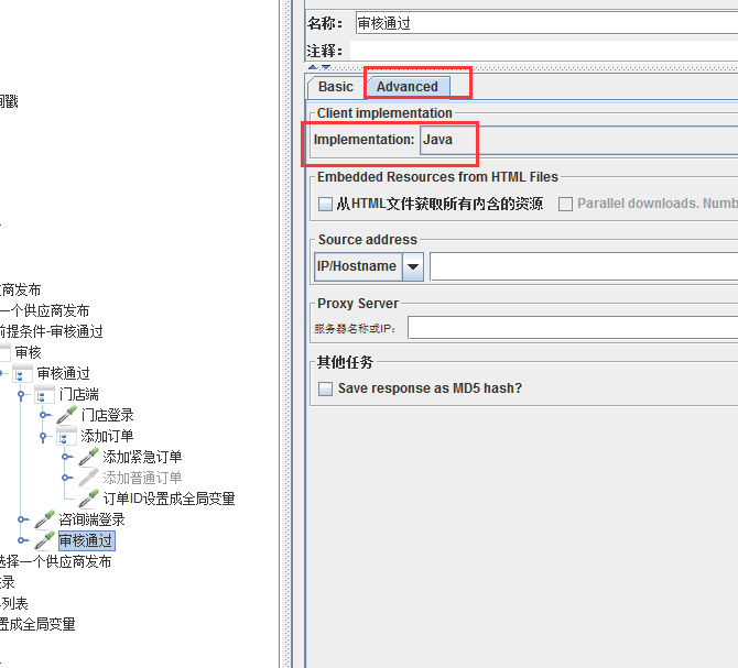 请求的Advanced,Implementation设置成JAVA;