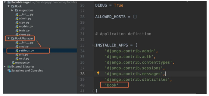 上面我们所执行的命令只是创建了这个应用,但实际上我们的项目还是不认可 它的,我们需要在setting.py文件当中去注册这个应用。