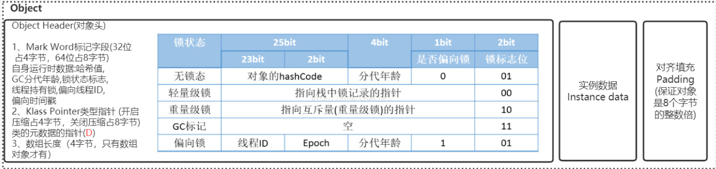 数组长度: 如果对象是数组或者包含数组, 对象头里会有数组的长度;