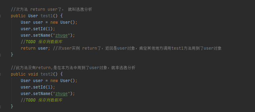 逃逸分析(1.7JDK之后默认开启逃逸分析,也可以用参数-XX:+DoEscapeAnalysis): 指当前对象创建后,被其他方法调用,这时候就要逃逸分析,看图,看注释,立马明白!