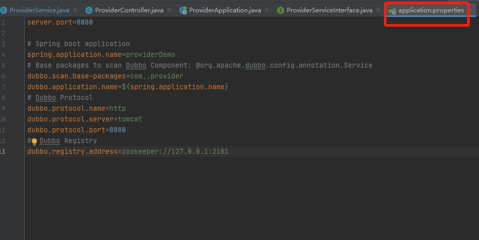 3、服务提供方(provider)配置文件
