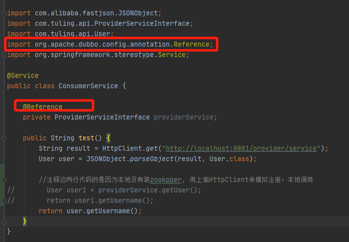 4、创建消费方(consumer)(注:这里用的dubbo的@Reference来装载bean)