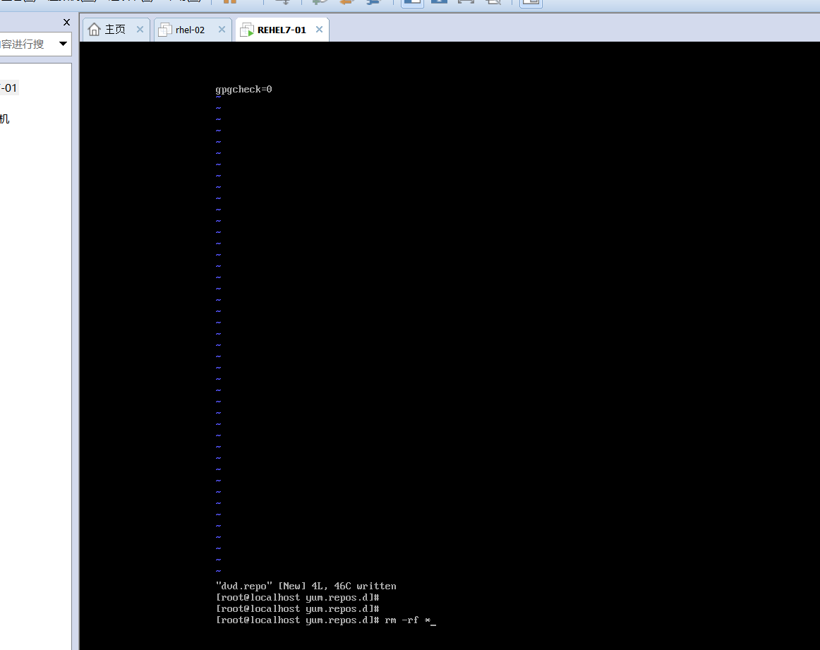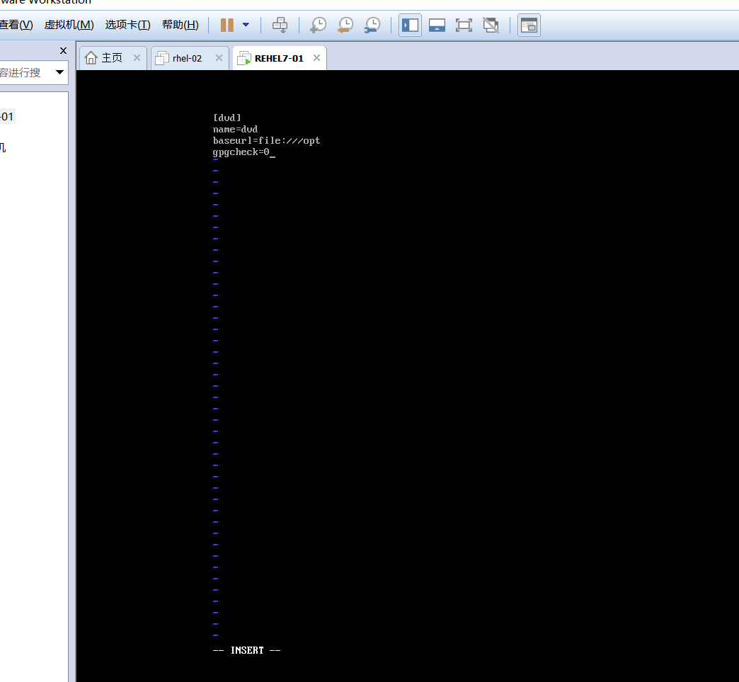 然后输入命令cat /etc/yum.repos.d/dvd.repo打开此文件输入: