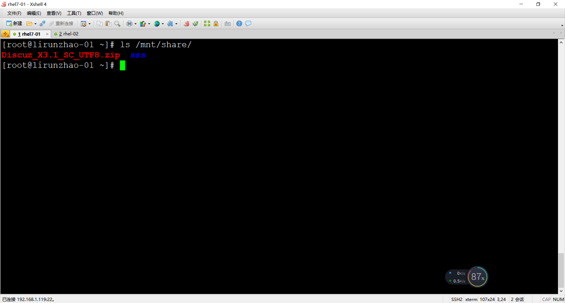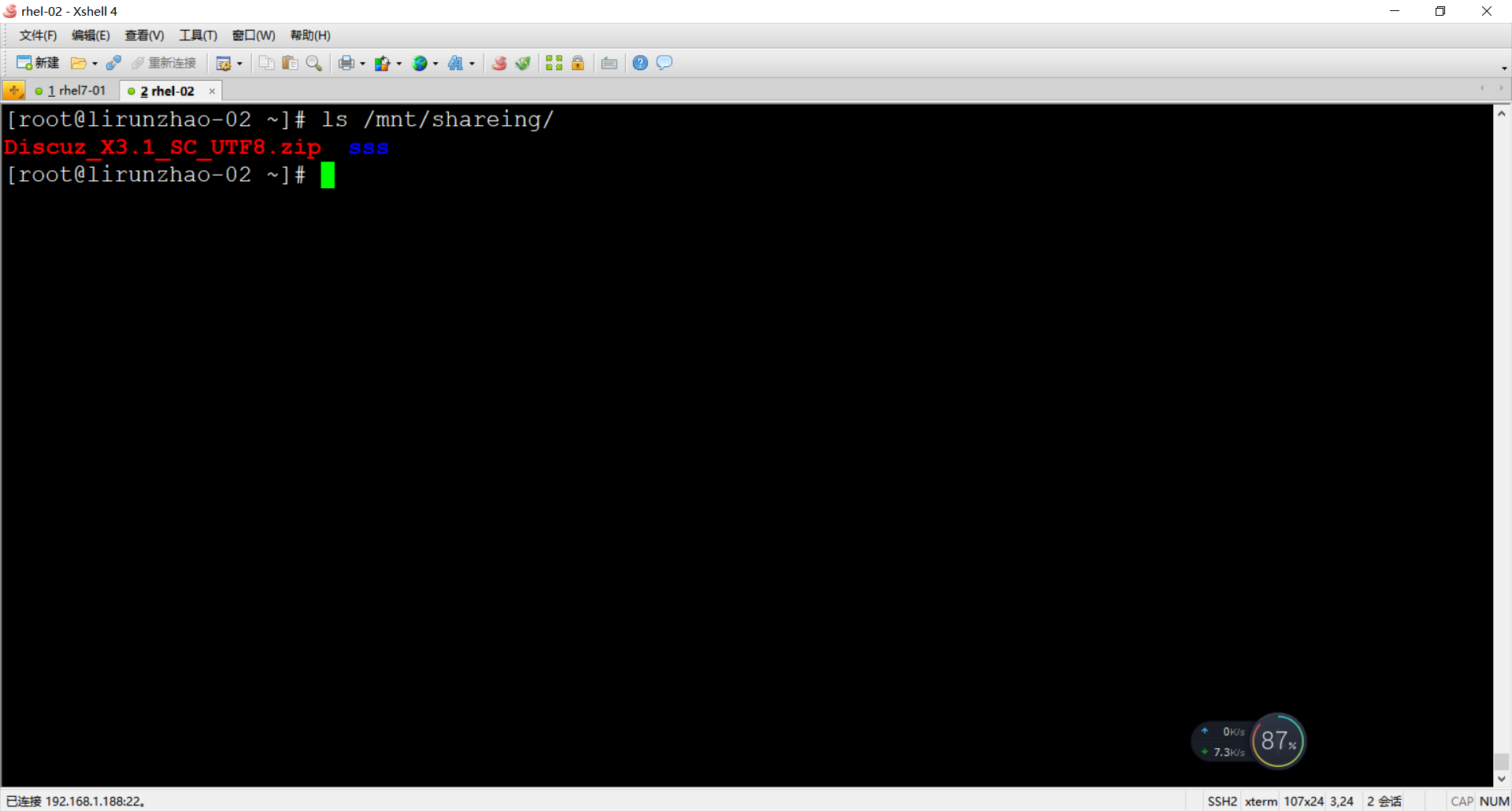 - Mount -t nfs 192.168.1.188:/mnt/share /mnt/shareing