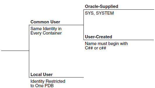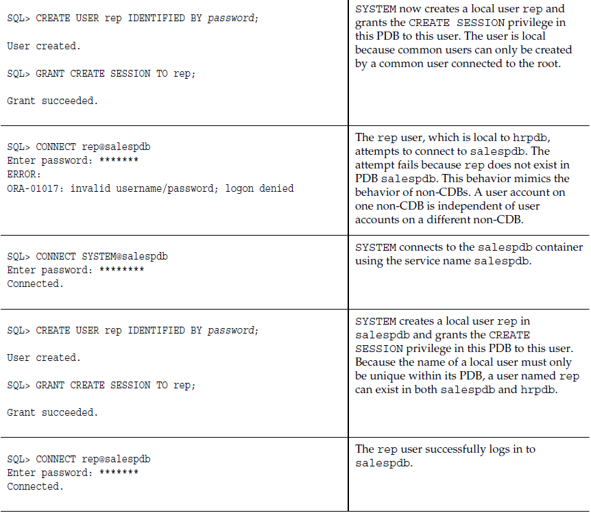 - 本地用户的名字必须在它所属的PDB中唯一,用户名以及PDB公共决定了本地用户的唯一性。