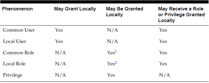本地用户,角色或者权限被定义为局限于某个容器内,所以,本地的用户不可以公共化的授予角色和权限,也不可以被公共化的授予权限。