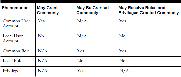 以公共方式授予公共角色的权限(privileges),在所有的container里都是有效的。相反,如果权限是以本地的方式授予的,那么即便角色是公共的,该权限也只在本地有效。