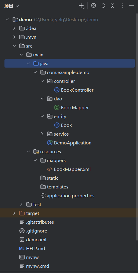 @SpringBootApplication @MapperScan("com.example.demo.dao") public class DemoApplication { public static void main(String[] args) { SpringApplication.run(DemoApplication.class, args); } }