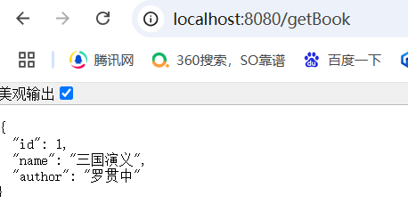 @RequestMapping("/getBook") public Book getBook(){ Book book = bookService.getBook(); return book; } }