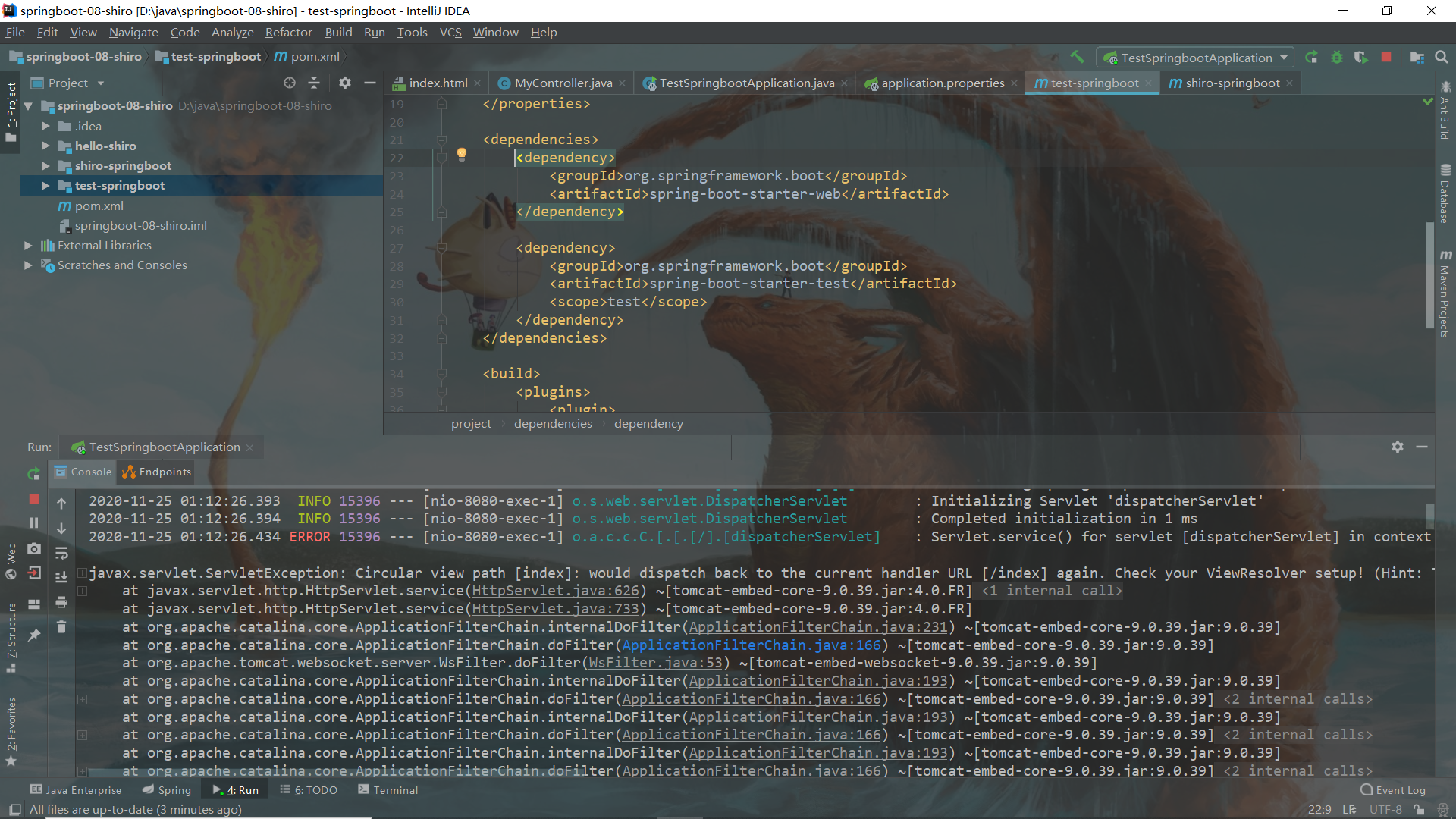 springboot项目异常would dispatch back to the current handler URL [/index] again