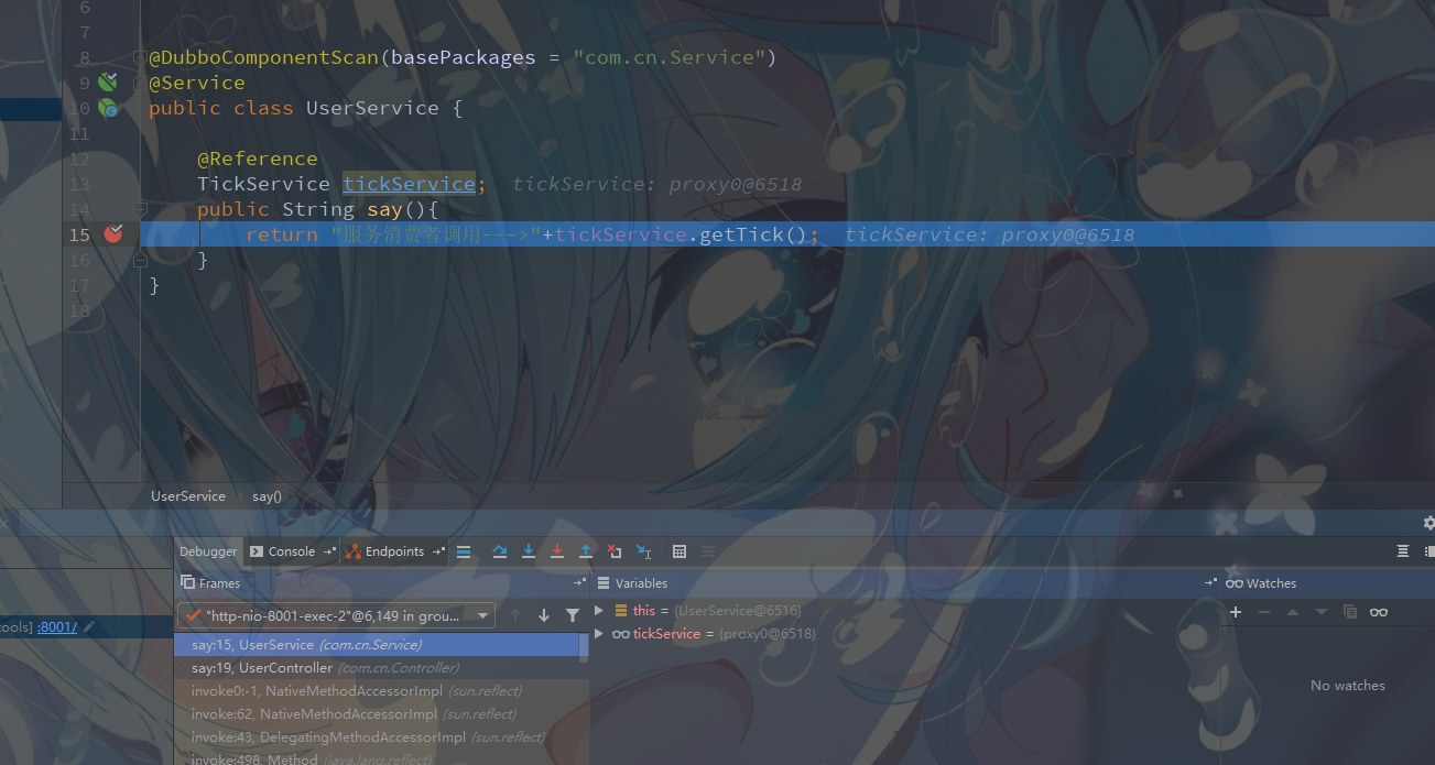 服务获取为null问题:在服务消费者Service层添加@DubboComponentScan注解扫描下服务接口