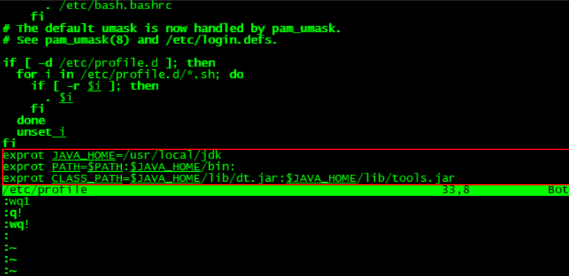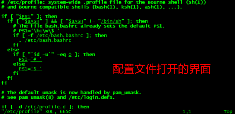 # vim /etc/profile //用vim编辑器打开profile进行配置