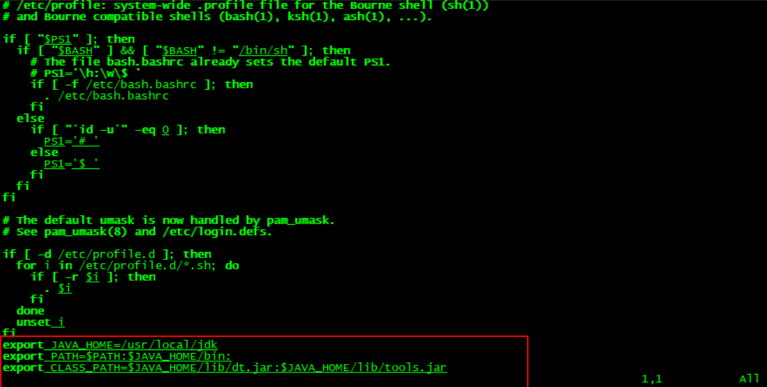 # vim /etc/profile //进行配置文件