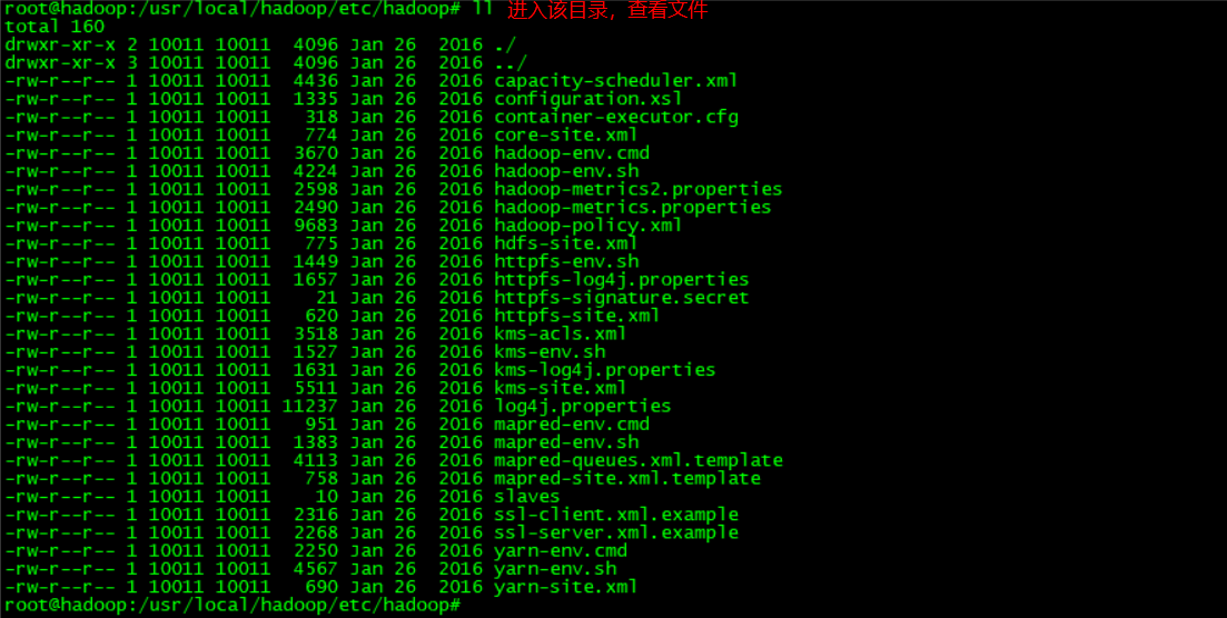 # cd .. //后退一步,因为下面的命令只能在hadoop文件夹下执行